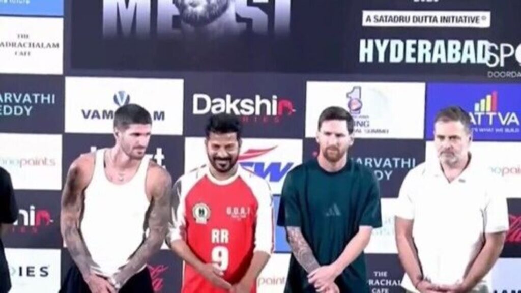 Messi interacts with Rahul Gandhi, plays football with Telangana CM Revanth Reddy in Hyderabad – Watch videos